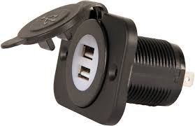 Dviejų lizdų USB įkroviklis, skirtas montuoti į skydelį ar prietaisų panelę. Komplektuojamas su apsauginiu dangteliu. Palaiko tiek 12V, tiek 24V įtampą. Tinka telefonų, planšečių, GPS ar kitų įrenginių įkrovimui laive.