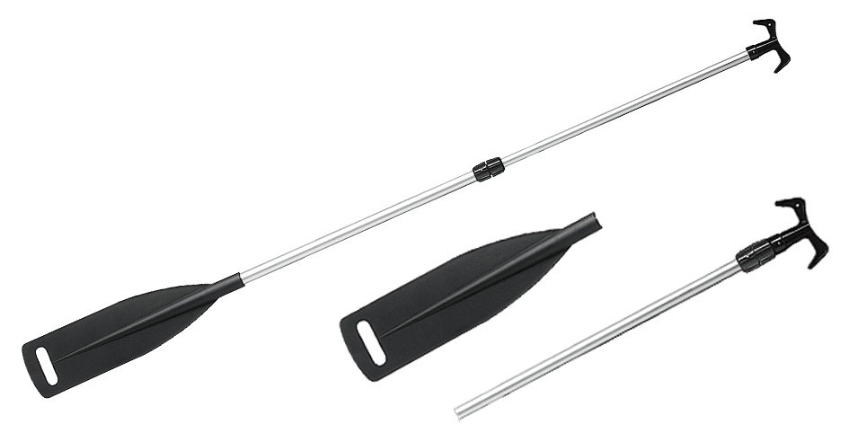 Aliuminis teleskopinis irklas su integruotu kabliu. Patogus naudoti kaip universalus irklas ar kobinys. Lengvas, reguliuojamo ilgio, nuimama mentimi, patogus transportuoti ir laikyti.