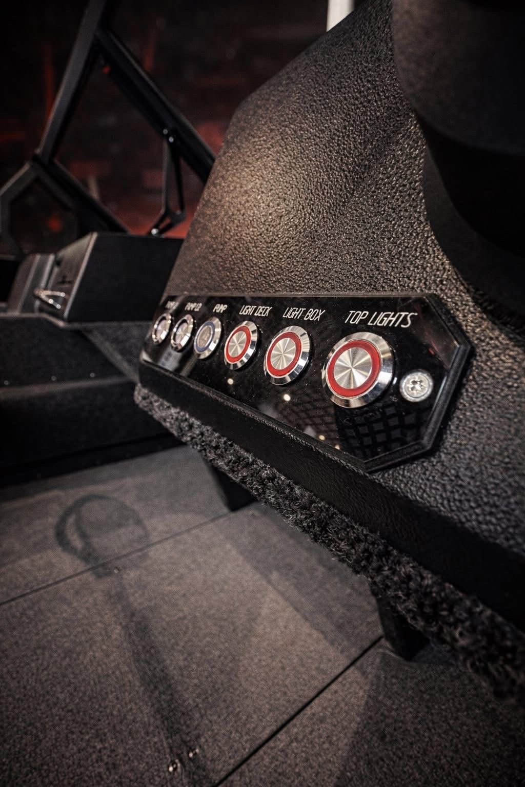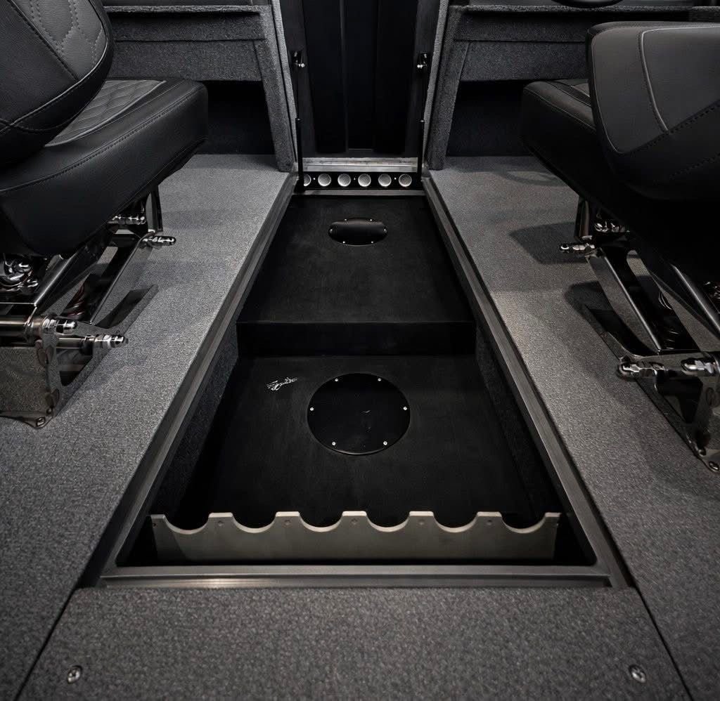Visi vidiniai paviršiai padengti jūriniu kilimu ir vinilu. Šiuolaikinio dizaino ergonomiška dviguba konsolė per visą laivo plotį turi praėjimo vartelius ir grūdintus stiklus. Laivagalyje įrengtos atlenkiamos sėdynės su daiktadėžėmis po jomis ir tarp jų. Valtyje taip pat įrengtos dėtuvės meškerėms, sauso tipo daiktadėžės, 80 l aeratorius laimikiams, stacionarus kuro bakas bei transportavimo tentas.