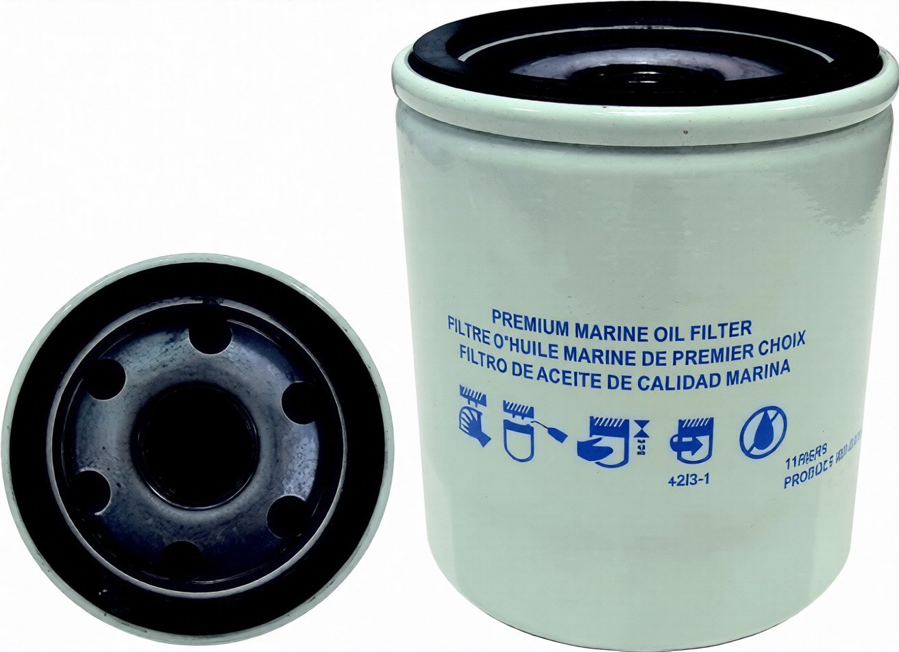 Alyvos filtras, skirtas Mercury ir Mercruiser varikliams nuo 2.5L iki 5.7L talpos, įskaitant V6 ir V8 modelius.