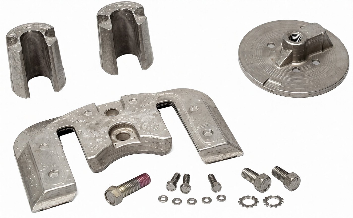 Aliuminio anodų komplektas skirtas Mercury MerCruiser Alpha One Gen II pavarų dėžės apsaugai nuo elektrocheminės korozijos.