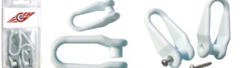Plastikinės apkabos skirtos burės tvirtinimui prie šliaužiklių, užtikrinant patikimą ir lengvai išardomą sujungimą.
