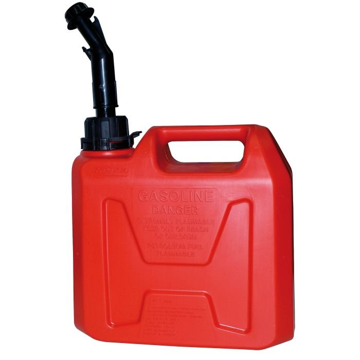 Kompaktiškas ir patogus 5 litrų degalų bakelis su automatinio stabdymo (auto shut-off) funkcija, kuri sumažina degalų išsiliejimo riziką pilant.