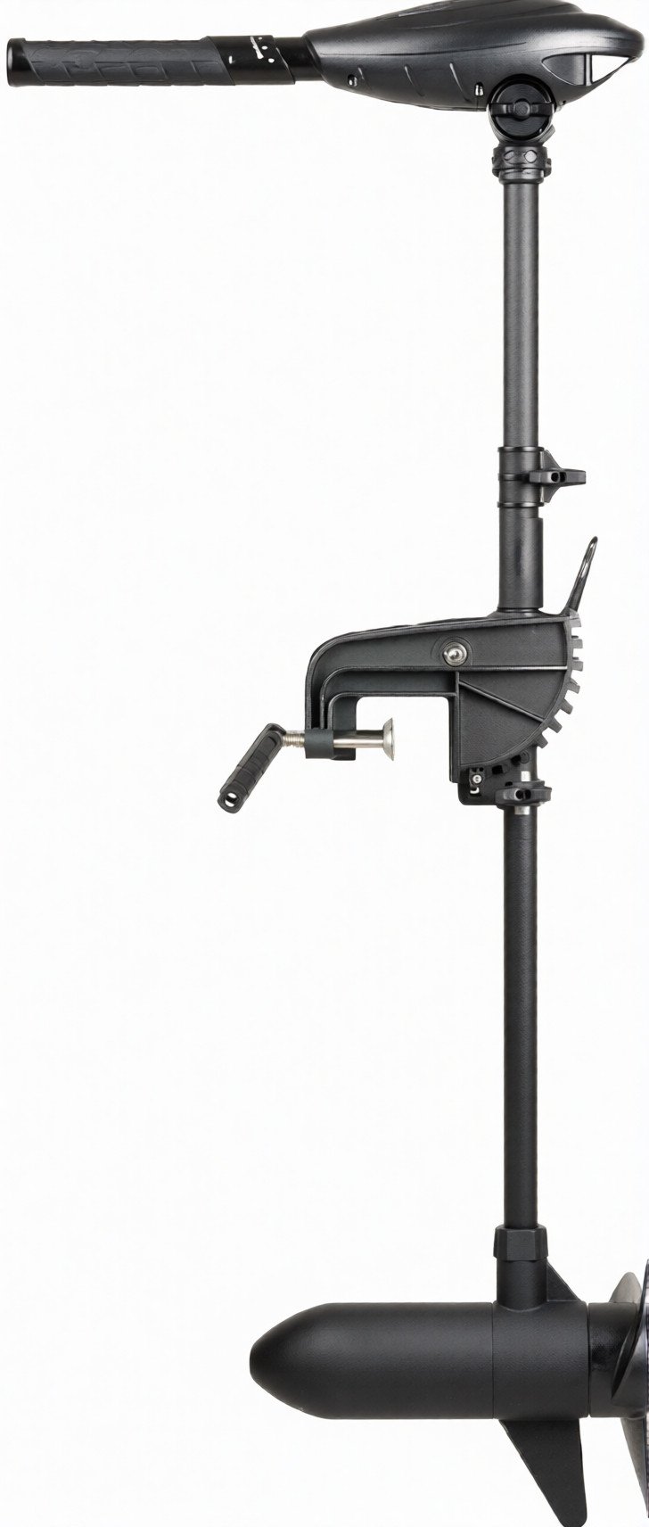 Tvirtas elektrinis 12 V variklis su teleskopine rankena ir 25kg traukos jėga – patikimas pasirinkimas mažesnėms valtimis.