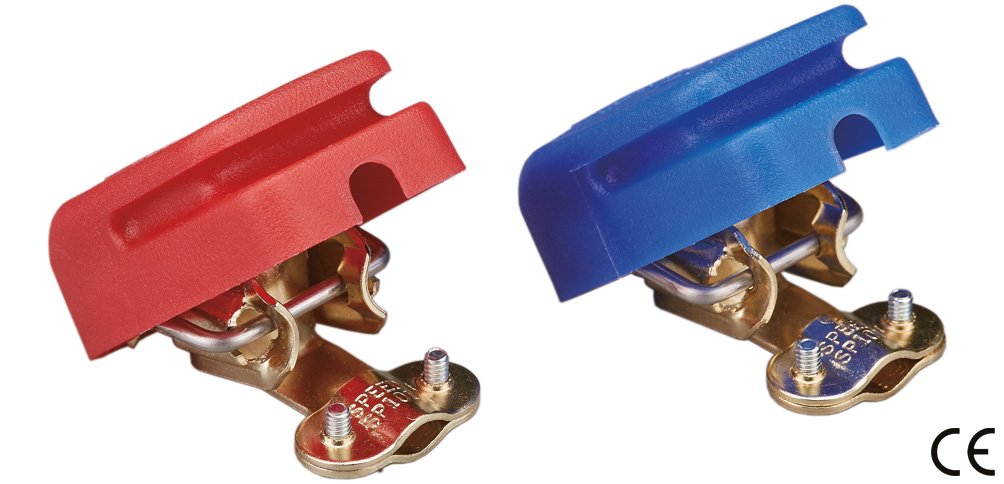 Plieniniai greito atjungimo akumuliatoriaus gnybtai su elektrocheminiu cinkavimu, užtikrinančiu ilgalaikę apsaugą nuo korozijos. Komplekte yra teigiamas ir neigiamas gnybtai su apsauginiais dangteliais. Patogus ir greitas būdas prijungti arba atjungti akumuliatorių be įrankių.
