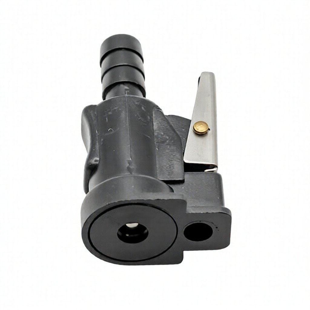 Plastikinė kuro žarnos jungtis su sklende, skirta prijungti degalų tiekimo sistemą prie Johnson, Evinrude ar OMC variklių. Tinka 10 mm žarnai.
