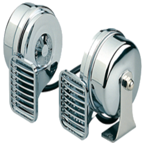 Elektromagnetinis garso signalas laivui. Korozijai atsparus chromuotas plastikas ir nerūdijančio plieno AISI 316 tvirtinimo varžtai. Sukuriamas žemas 410 Hz garsas.