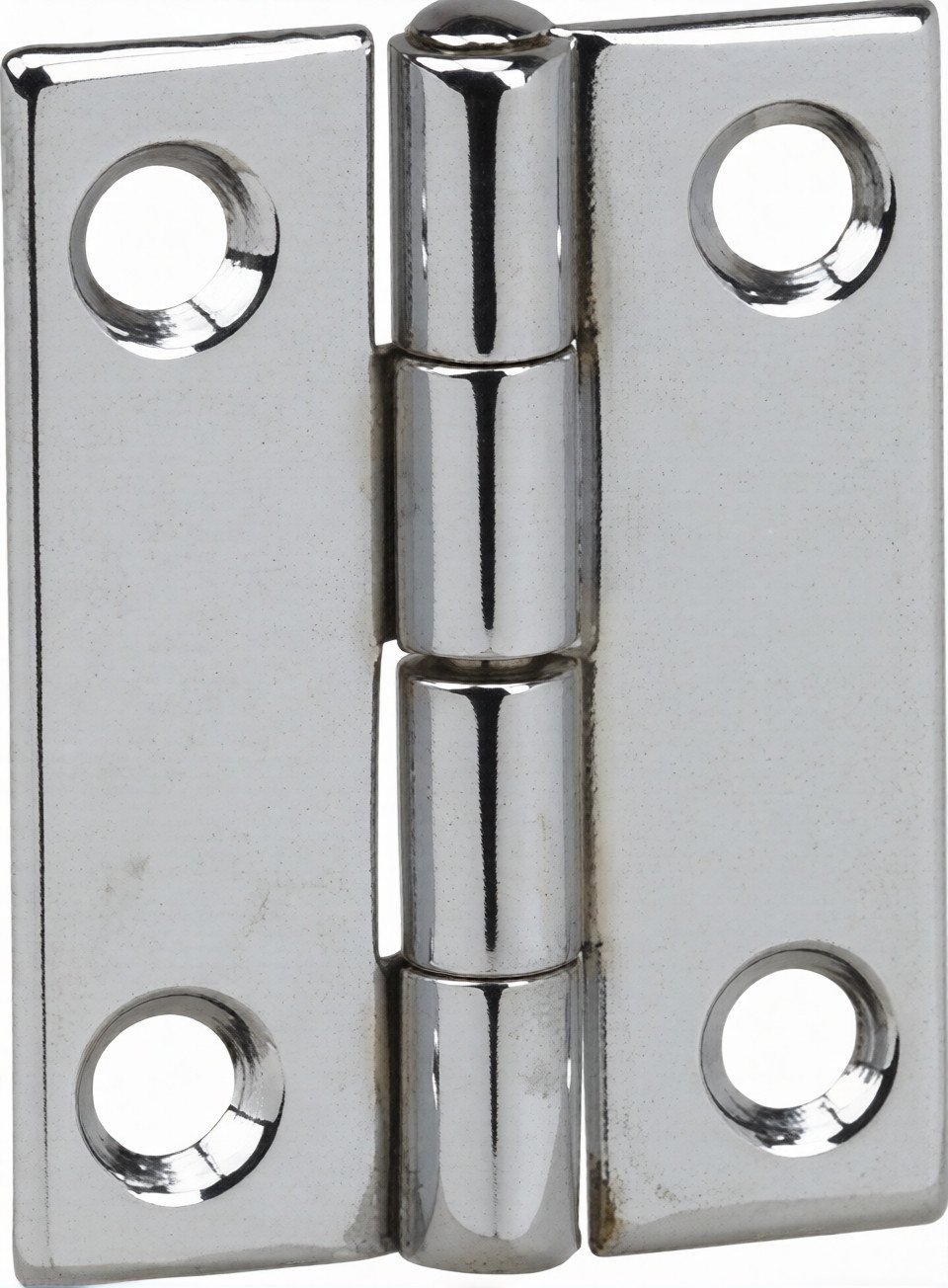 Kompaktiški AISI 304 nerūdijančio plieno lankstai, tinkami mažiems liukams, durelėms ar baldams jachtose ir kateriuose.