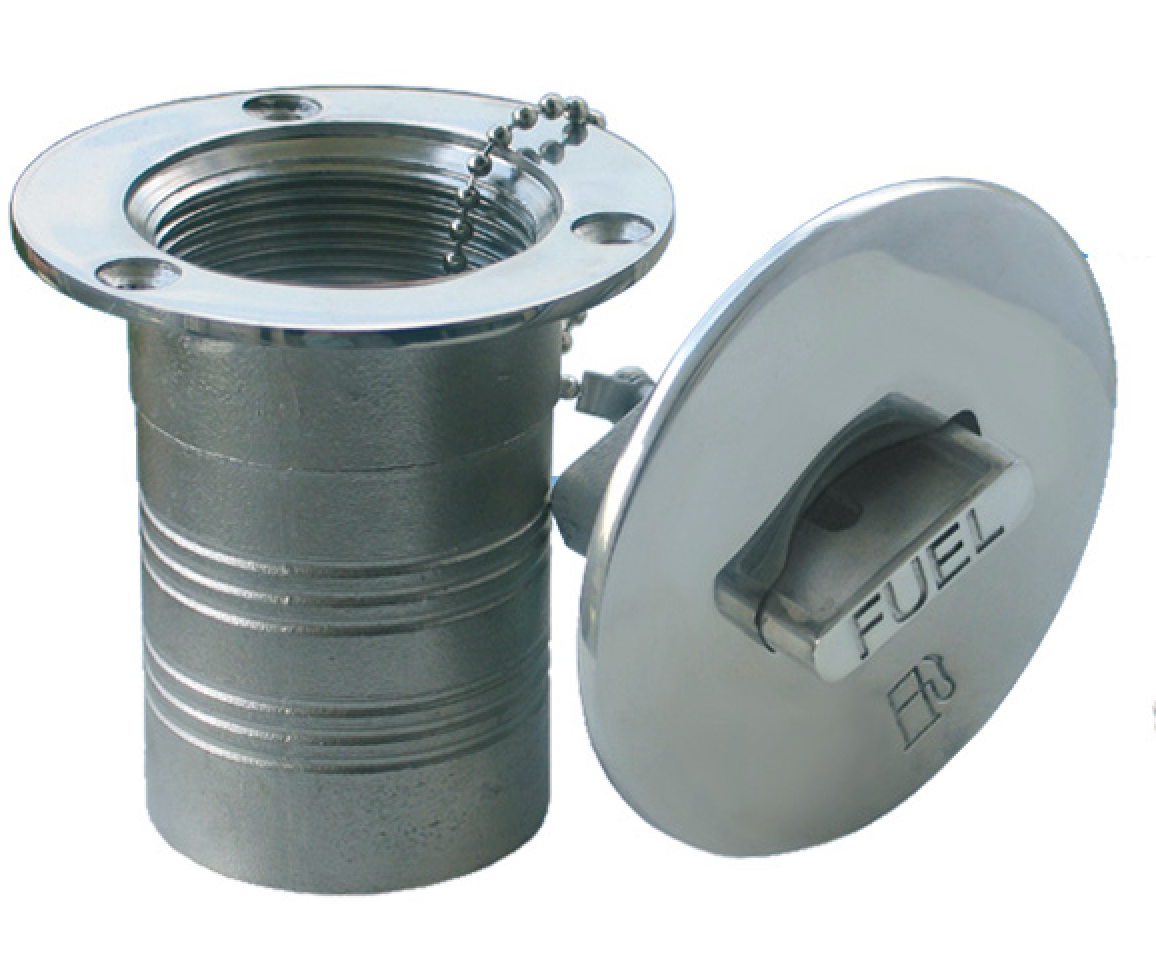 Aukštos kokybės nerūdijančio plieno AISI 316 degalų užpylimo anga su paslėptu užraktu ir apsaugine grandinėle. Komplektuojama su sandarinimo tarpine (O-ring). Atspari korozijai, sūriam vandeniui ir UV spinduliams – idealiai tinka jachtoms ir kateriams.