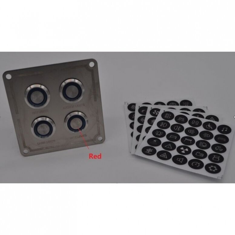 Nerūdijančio plieno jungiklių panelė 4 apvalūs jungikliai su LED