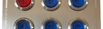 Vandeniui atspari jungiklių panelė su LED indikatoriais, skirta montuoti valtims ar kitoms transporto priemonėms.