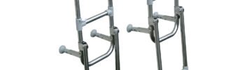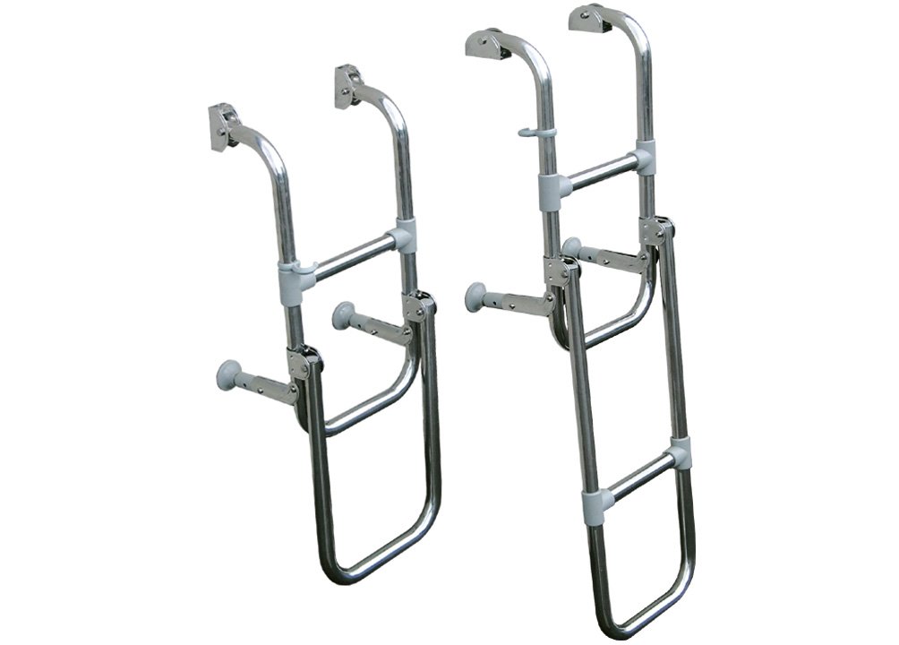 Tvirtos, poliruoto AISI 316 nerūdijančio plieno užlenkiamos kopėtėlės su reguliuojamomis atramomis ir teleskopinėmis PVC kojelėmis. Puikiai tinka montuoti laivų platformose.