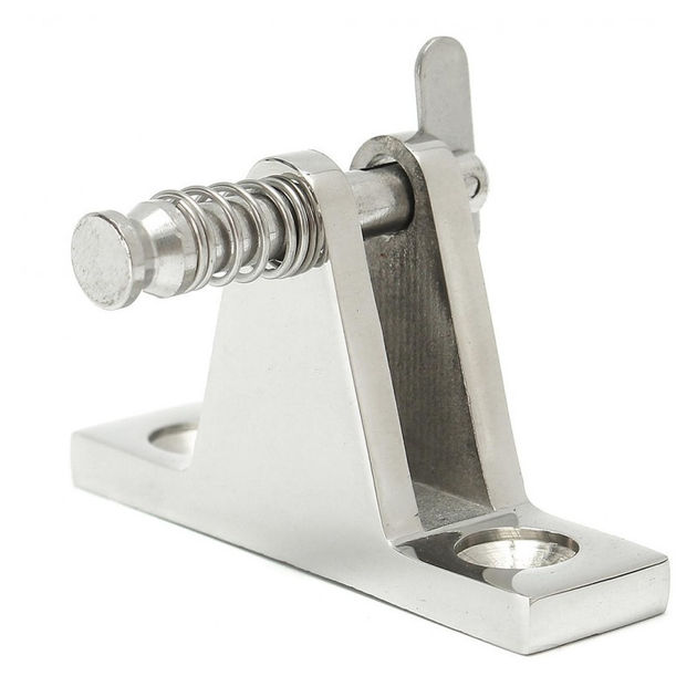 90° kampo tvirtinimo laikiklis, skirtas montuoti ant denio. Turi lengvai išimamą fiksavimo smeigę. Pagamintas iš atsparaus AISI-316 nerūdijančio plieno.