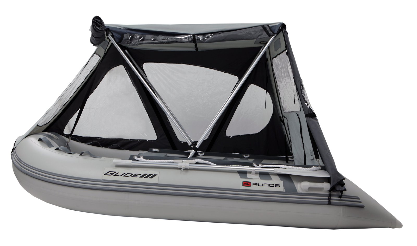 Lengvai surenkamas išrenkamas stogelis palapinė pripučiamai valčiai. Pagamintas iš kokybiško vandeniui nepralaidaus brezento. Puiki priemonė žvejojant lietingu ar vėjuotu oru. Tinka 320 ir 340 m. ilgio valtims