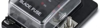 Kompaktiškas saugiklių blokas su integruotu LED indikatoriumi ir minuso paskirstymo kontūru, skirtas patogiam elektros instaliacijos tvarkymui.