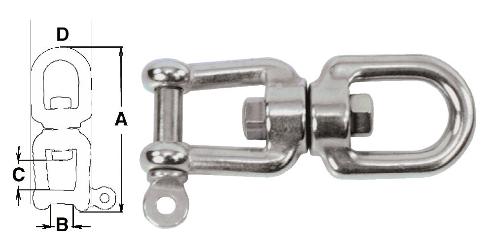 Besisukanti šekelio tipo jungtis, skirta inkarų grandinėms ir tvirtinimo sistemoms. Leidžia grandinei laisvai suktis, išvengiant susisukimo ir apkrovų perdavimo. Pagaminta iš tvirto, korozijai atsparaus nerūdijančio plieno.
