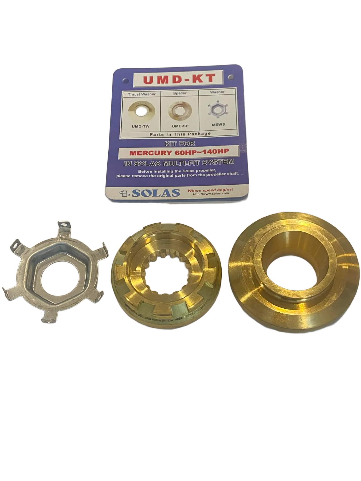 Sraigto adapterių komplektas KIT MULTI-FIT MD (UMD-KT) naudojamas Solas gamintojo Yamaha varikliams skirtų YD grupės sraigtų pritaikymui 40 AG (big foot), 75, 80, 90, 100, 115 ir 125 AG (2T ir 4T), F40EFI Pro MERCURY varikliams.