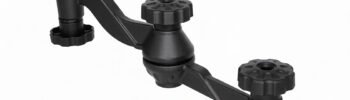 Horizontalaus tvirtinimo sukiojamas echoloto ekrano laikiklis su dviejų svirčių konstrukcija, skirtas patogiam didesnių ekranų pozicionavimui laive.