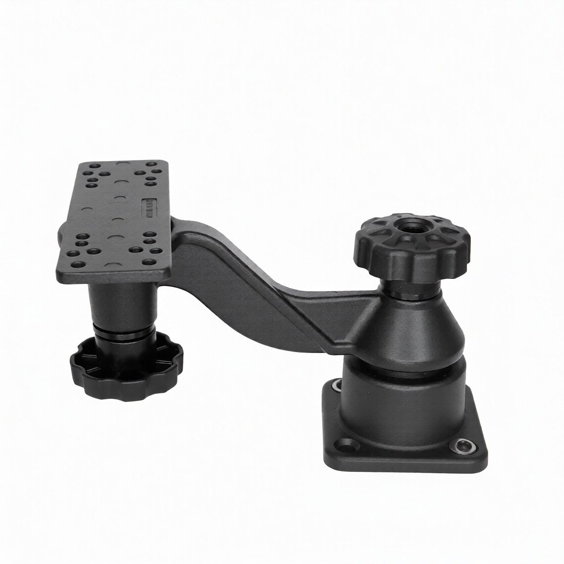 Sukiojamas vienos svirties laikiklis, skirtas echoloto ar jūrinės elektronikos ekranui tvirtinti horizontaliai ir patogiai reguliuoti žiūrėjimo kampą.