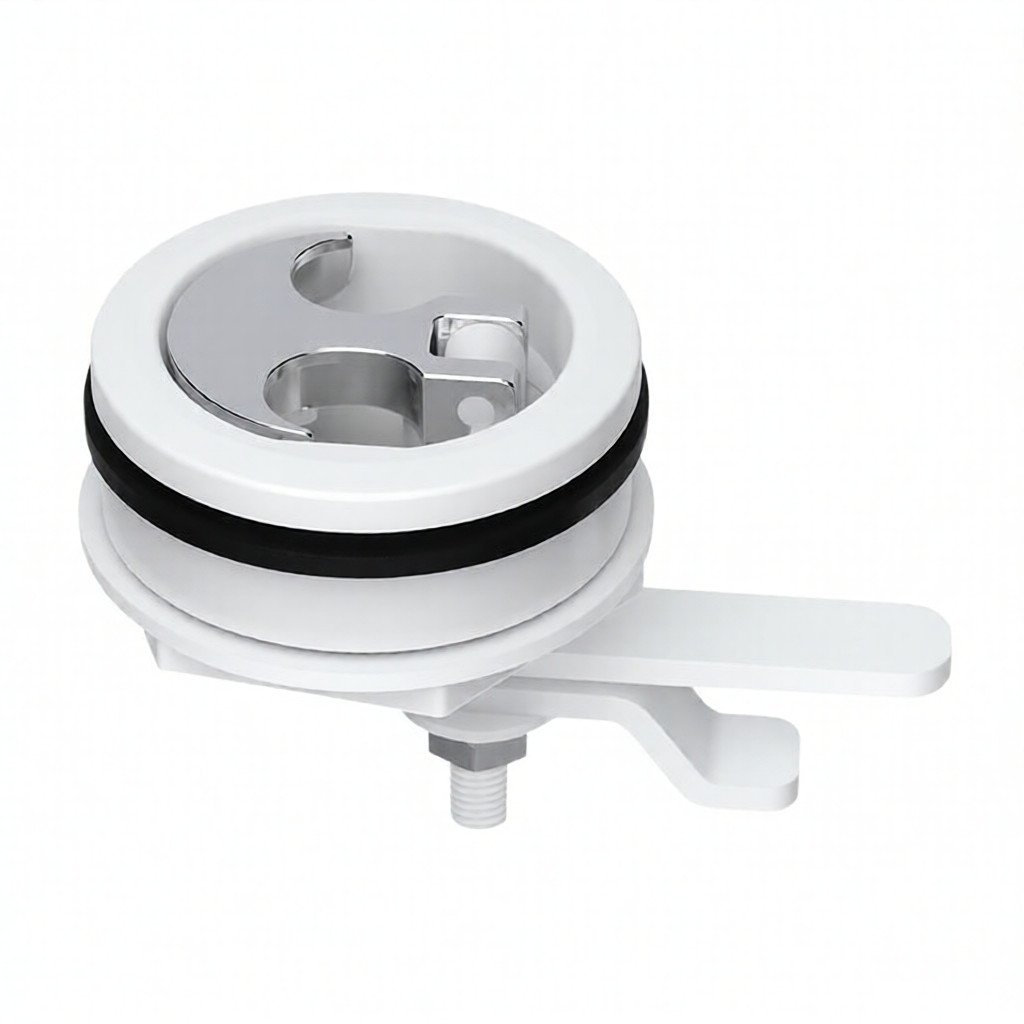 Baltos spalvos įleidžiamas plastikinis užraktas laivo dangčiui ar liukui. Skirtas saugiam uždarymui, atsparus korozijai ir jūrinei aplinkai.