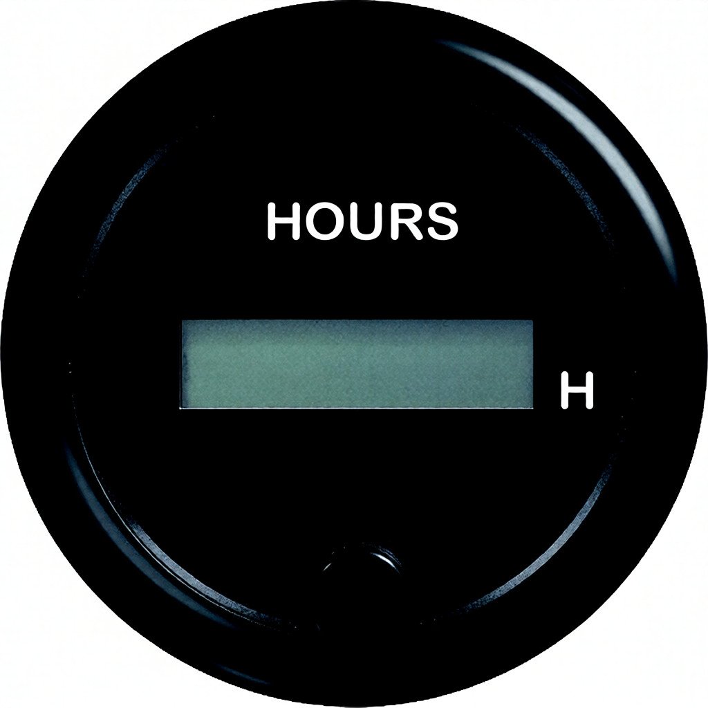 Juodos spalvos valandų skaitiklis, skirtas variklio darbo laiko sekimui. Montuojamas į prietaisų skydelį, su 51 mm skersmens korpusu.